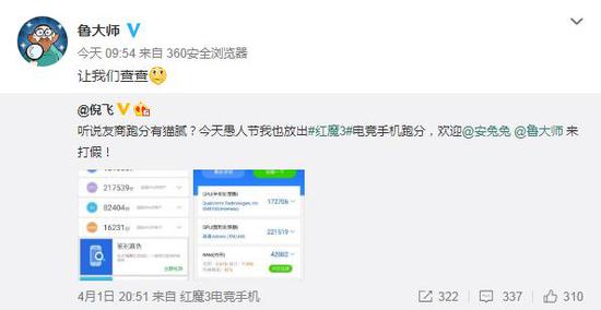 虽然是在愚人节公布的信息,但倪飞微博已经获得鲁大师官方回应,证实红魔3确实不惧怕打假。对于红魔3曝光的高性能跑分,其实在红魔Mars身上就能看出来,同为骁龙845旗舰手机,却能以32万跑分夺得安兔兔性能榜单的冠军,这一次红魔3无疑是再次瞄准了性能榜单的首位。
